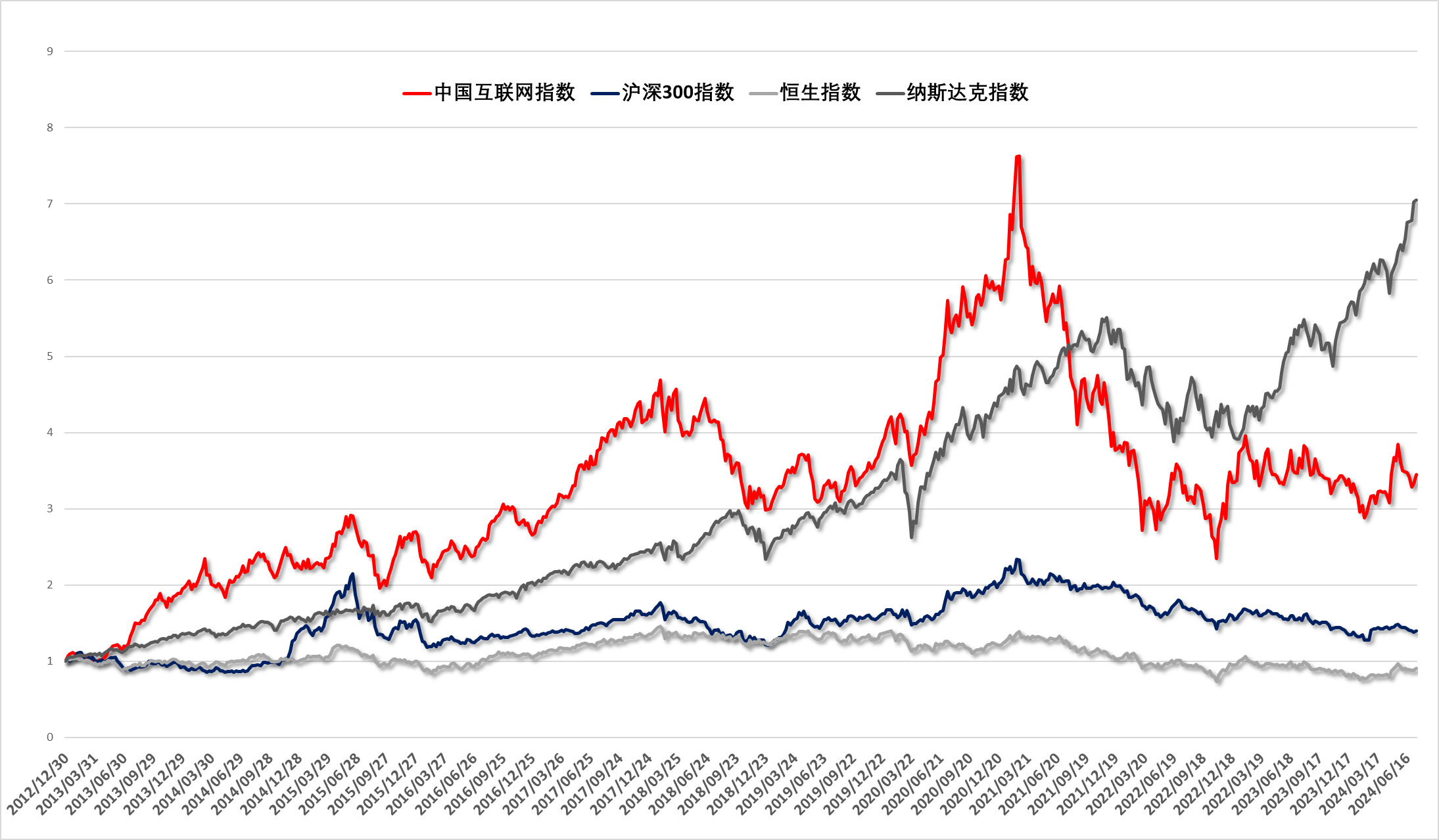中国互联网指数是中国大陆以互联网相关业务为主业,上市于美国,香港和中国大陆市场的公司股票为成份股,基于自由流通市值(美股使用流通市值,下同)一定比率为权重而编制的指数,以人民币计价。中国互联网指数历史表现优异,是最成功的投资方向之一,指数在未来将持续反映互联网产业和核心公司的发展走势。